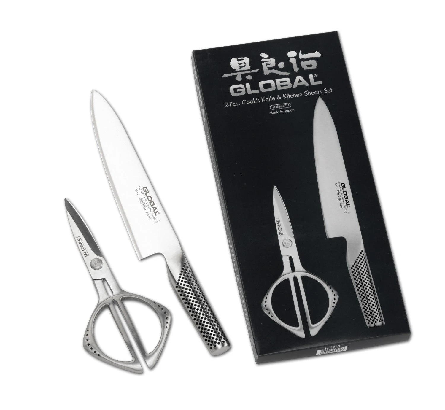 Made in Japan from high quality steel with a laser cut design that gives you an exceptional sharpness right out of the box, this Global G2210 – 2 Piece Set of Kitchen Shears and G-2 Cooks Knife will be one you’ll wish you’d bought sooner.