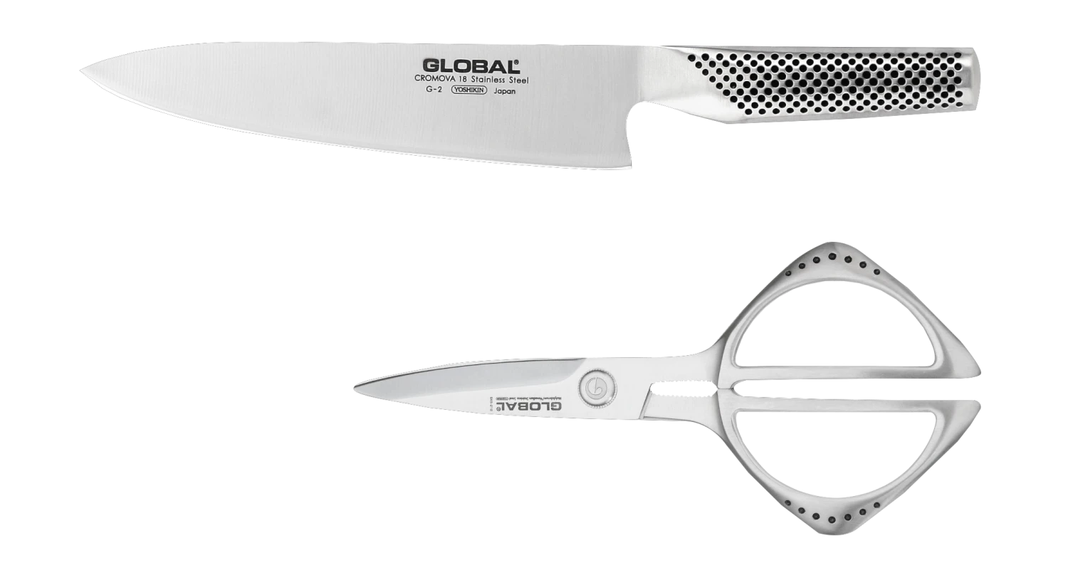 Global knives are among the most popular knives in the world and it’s not hard to see why. This Global G2210 – 2 Piece Set of Kitchen Shears and G-2 Cooks Knife is a great starter set that features one of the most popular knives, and has everything you need to start cooking up a storm in the kitchen and can handle a variety of daily cooking tasks without needing multiple knives.