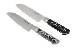 The KitchenAid santoku knife is a must-have for everyday meal prep. The ridges on the blade are specially designed to prevent foods from sticking while you slice, making it ideal for chopping and dicing vegetables. This forged knife is expertly crafted using semi-polished, high-carbon Japanese steel, hardened and tempered to provide a long-lasting edge for a professional, quality cut every time. This KitchenAid knife features an eastern-style ergonomic handle with a triple-riveted pin design that provides optimal control for everyday use. This handle is expertly engineered with a textured finish for a comfortable grip and accented with a stainless steel endcap. Includes a custom-fit blade cover for secure, safe storage. KitchenAid knives are top rack dishwasher safe. To extend the life of your knives, hand washing is recommended. Dry immediately.