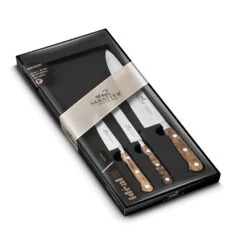 The Ideal Cuisine set is part of the Ideal collection from the signature brand Lion SabatierĀ®. This set is composed of a 20cm Cooks Knife for cutting, mincing, chopping, dicing vegetables and meat effortlessly, making it the most useful knife in food preparation. A 10cm Paring Knife with a sharp tip and a rigid blade for peeling, deseeding and easily carrying out all precision tasks and a 12cm Serrated Utility Knife, serrated blade for peeling, cutting and preparing hard-skinned fruits and vegetables