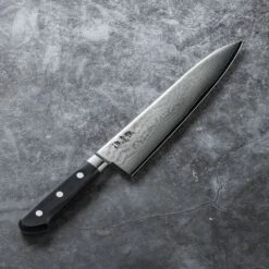 This Minamoto Kotetsu 21cm Chef Knife kitchen knife was born and raised in Seki a city of cutlery rich in nature. This range is made using 33 layers Damascus VG10 steel with unique forging process, which is making the beautiful and elegant wave of Damascus pattern.