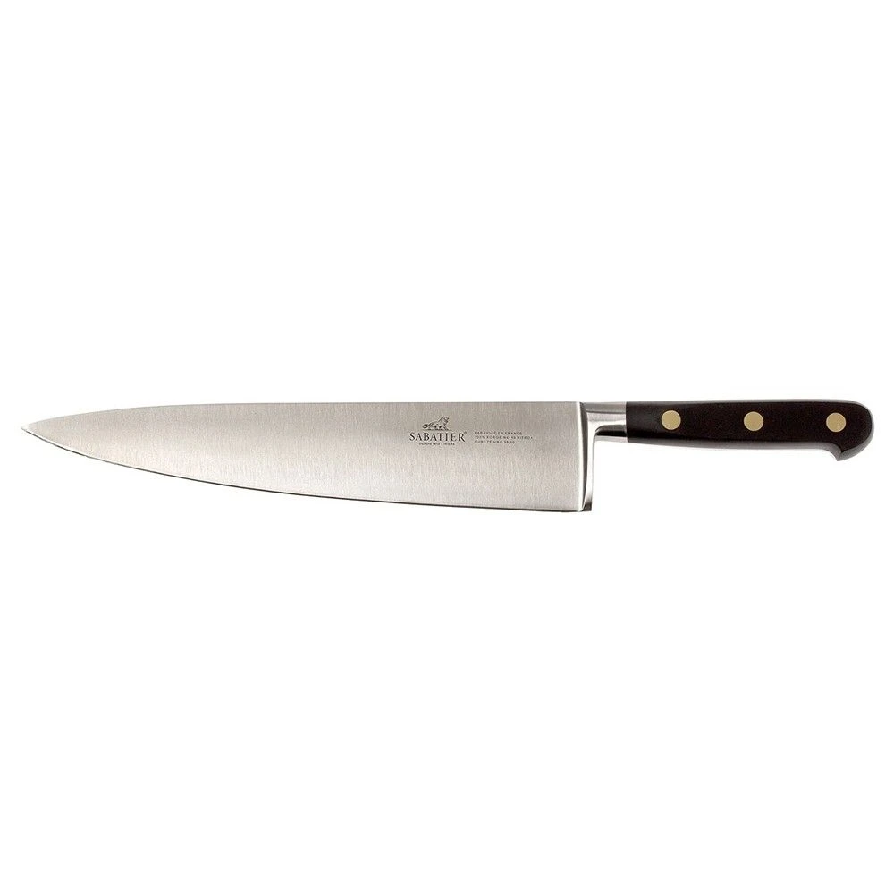 The Sabatier® Ideal Brass Rivets 25cm Cooks Knife has everything a good knife should have. It’s an iconic Sabatier knife with a distinctive slim and elegant design and modern high-performance materials. The handle has three brass rivets to make it look fashionable. Sabatier knives have been produced in this Thiers Lion Sabatier factory since 1812 by Rousselon Dumas-Sabatier, one of France’s most renowned and well-known knife makers.