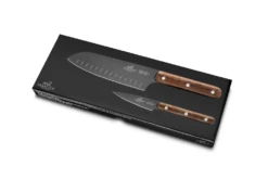 The SabatierĀ® Phenix 2 Piece Set – Paring Knife & Santoku Knife is the perfect choice for any kitchen. This set includes a paring knife and a santoku knife in a beautiful Wenge wood handle. The blades are made of X50CrMoV15 stainless steel, which is known for its durability and ease of sharpening. The blade has an impressive titanium covering that looks great and provides superior protection against corrosion.