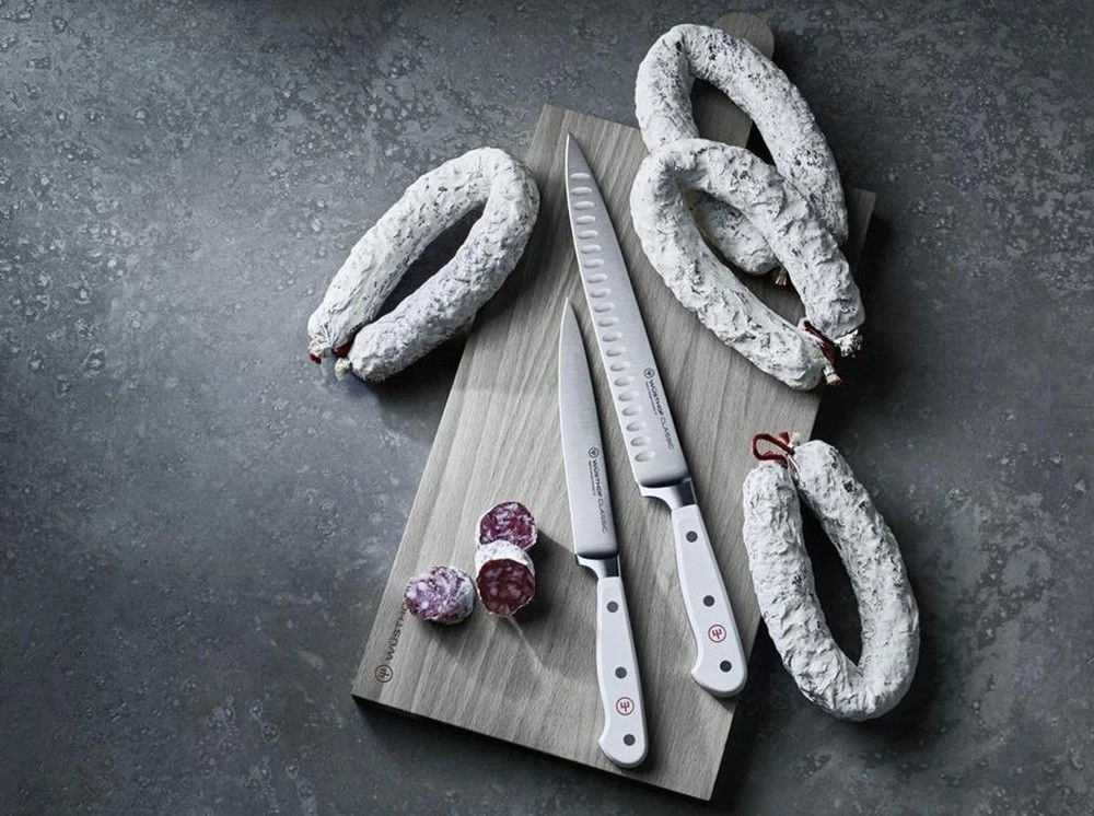 The Wusthof Classic White 23cm Carving Knife is intended for slicing and serving cooked meat, poultry and vegetables.