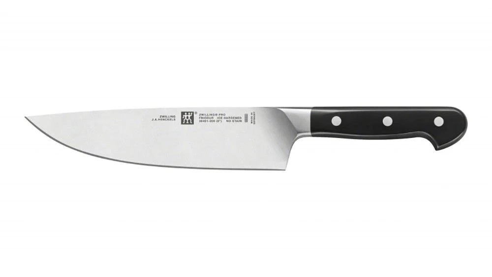 The handle of this chef’s knife is made from durable plastic. The balanced weight distribution between the handle and the blade ensures ease of working. The heavy blade and sharp cutting edge reduce the effort needed for cutting. The transition between the blade and handle is seamless and the three rivets in the handle give the knife its classic look. When working with the chef’s knife from ZWILLING, enjoy the different possibilities offered by chopping ingredients quickly and precisely while preserving their quality.